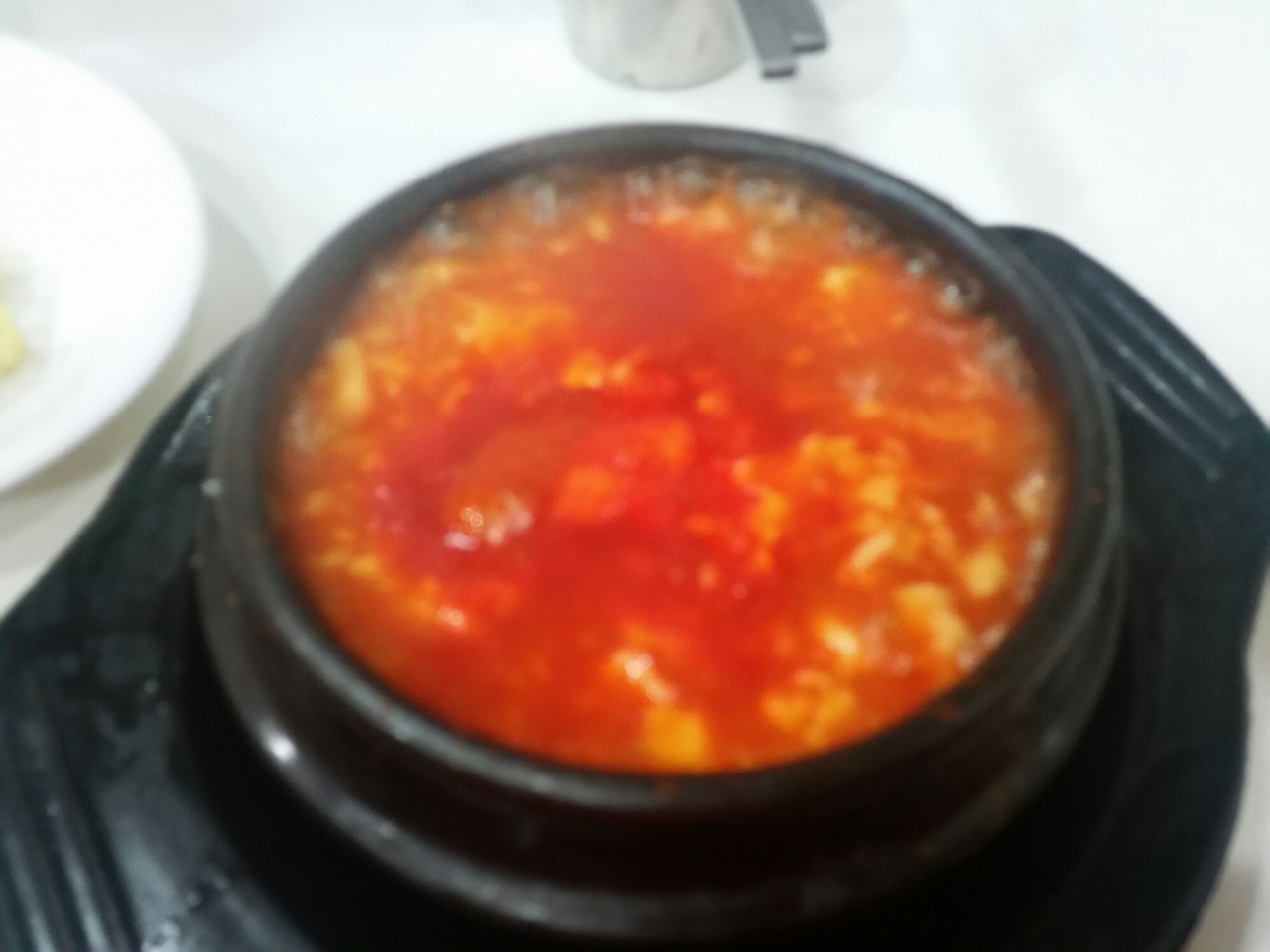 ランチタイムにスンドゥブとチョングッチャンをいただきました~