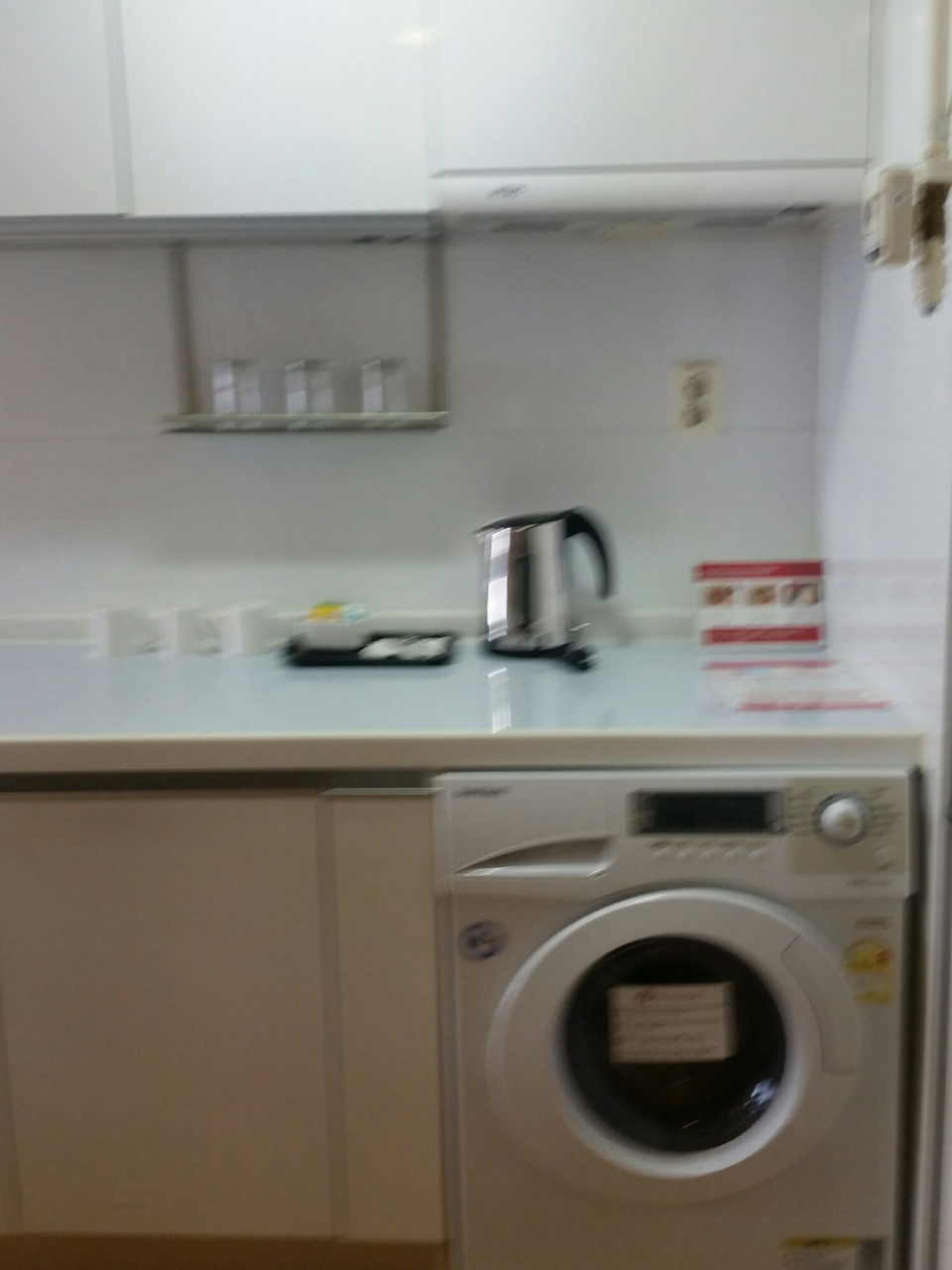 3人でそれぞれスーツケースを広げても問題ない広さで快適でした。レジデンス仕様で洗濯機も備えつけられていました。