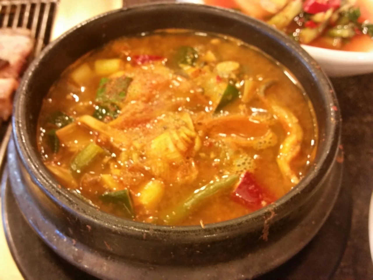 チゲも美味しいですが熱炭プルコギがお気に入り、薄切りの味付け肉ですが程よい辛さで肉も柔らかく食べやすいです。