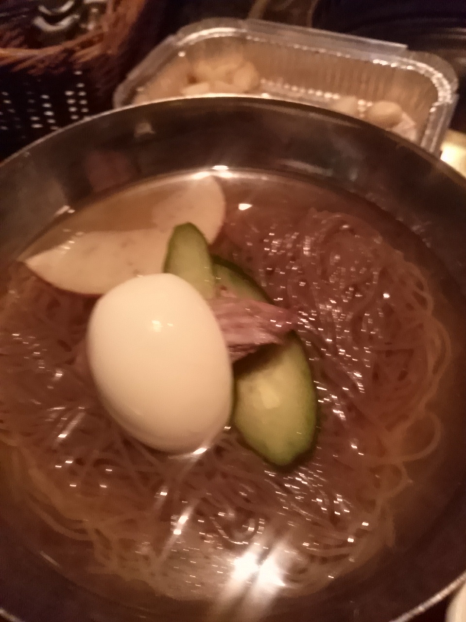 メインメニューはスジェビといわれるすいとんとジャガイモのチヂミ