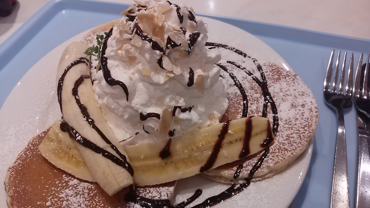 ふわふわのパンケーキに甘さをひかえた生クリーム。しつこくないのでかるーく食べられてしまいます。フードコート内なのでちょっと落ち着かないのは残念。- 旅行時期
