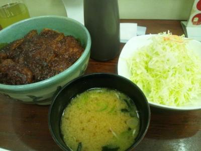 みそカツ丼定食を注文、思っていた以上にこってりしたみそ味でしたが、付け合わせのキャベツを合わせることでちょうど良い感じに。