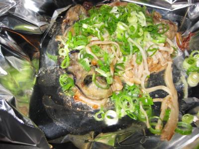 牡蠣の鉄板焼きも!バターで焼いてエノキダケと一緒にいただく牡蠣も絶品!
