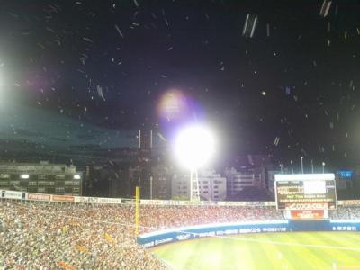 でも中に入ってしまえば雨とは無縁の世界!初めての球場で観戦もグルメも楽しめました。- 旅行時期