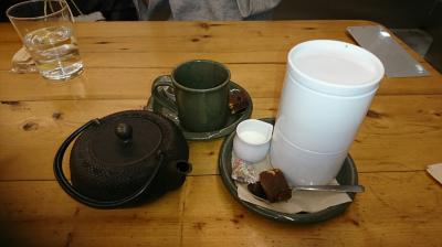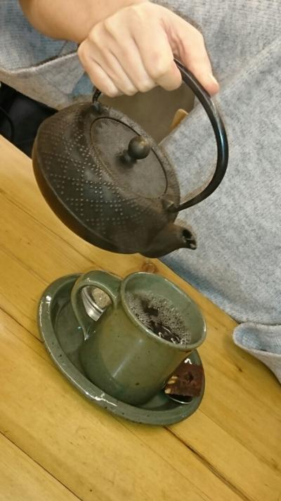 私は珈琲。友達はお茶を頼んだら、鉄瓶で出てきてビックリ!