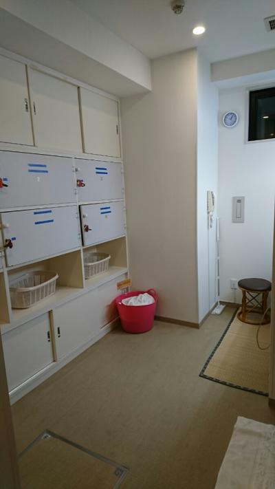 シャワーを浴びる時、自分の脱いだ服の入った脱衣籠を使っているシャワールームのカーテンの前に置いておくのがチョット違和感。