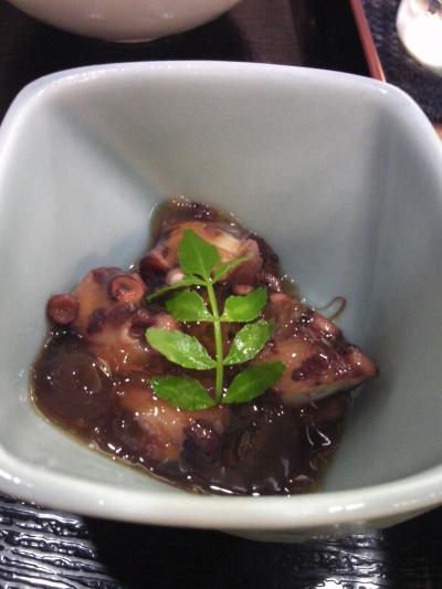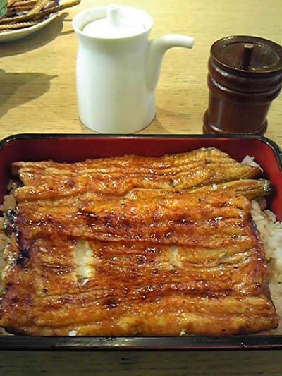 - 鰻は江戸前。小鉢のお惣菜は博多の味付けだそうです。