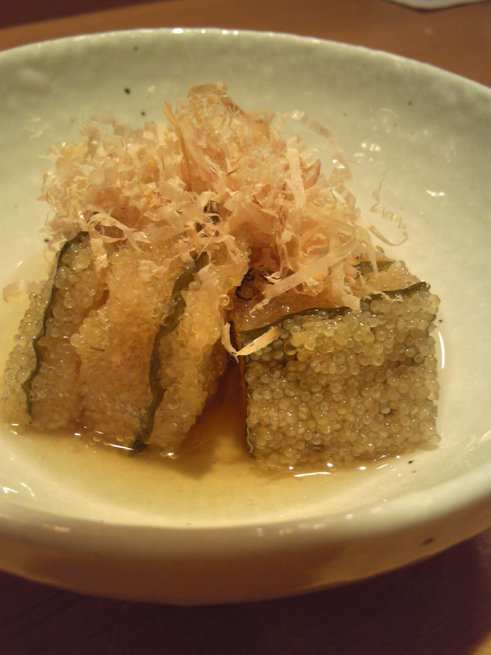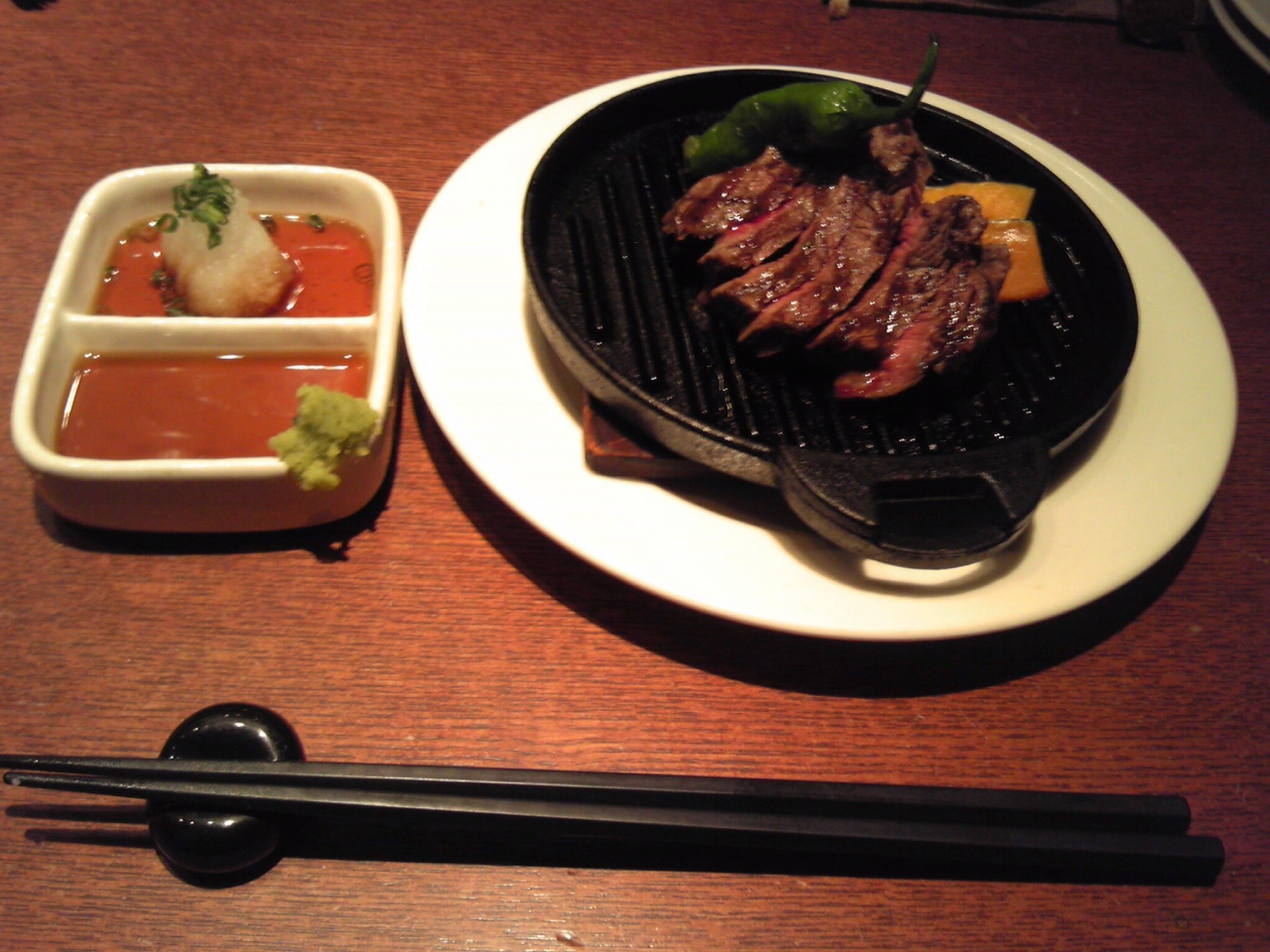 牛ヒレ肉あぶり1080円、空豆塩ゆで420円、イワシ丸ぼし200円、生ビール、日本酒グラス1杯、お土産に「いくらオニギリ」2個で、トータル4000円弱でした!