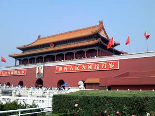 人民大会堂を左手に見ながら、天安門広場を天安門に向かいます。