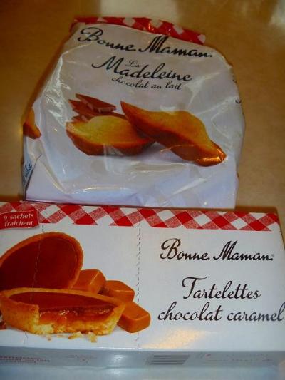フランスのお菓子メーカー「ボンヌ・ママン」のマドレーヌとチョコタルト。...