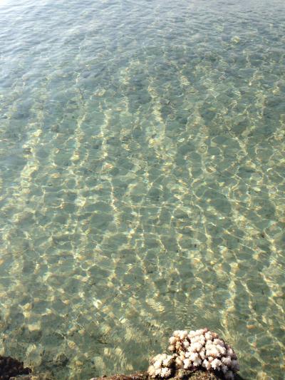 水は思ったより澄んでいて、浅瀬にも拘らず、シュノーケリングで様々な種類の魚と戯れることができます。