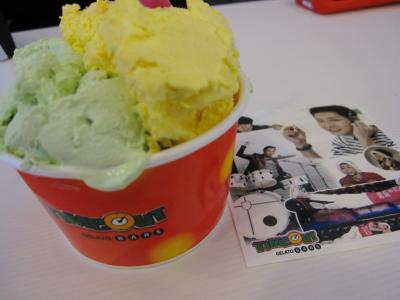 ジェラードの種類は何種類かあり、選ぶのが楽しいです。アイスを頼むとユチョンのシールが一緒にもらえます。店内はユチョンのグッズや写真がたくさんあります。席はそこまで多くないので夏とかは結構混むのかな?冬でも結構人がいましたので・・・