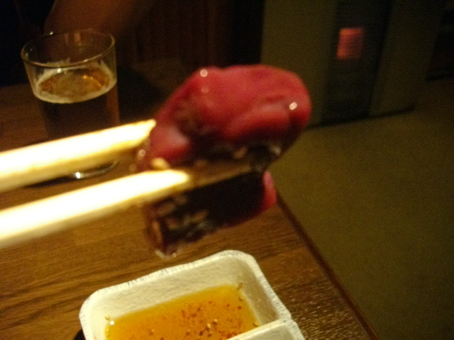 お勧めメニューは、なんと言っても、肉厚の「レバ刺」と「なんこつ」です。