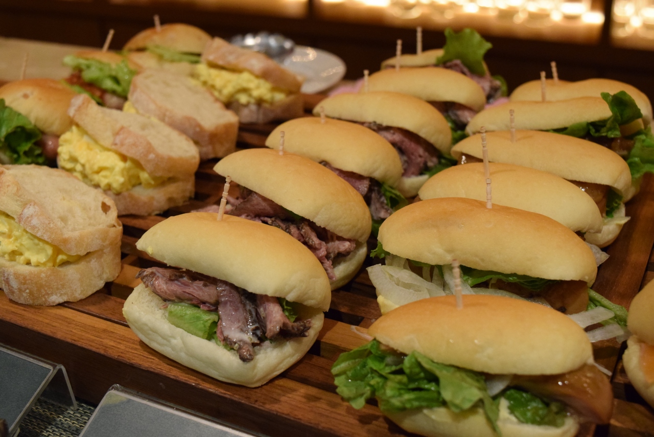 自家製のパンがまあおいしいのなんの。普通にクロワッサンとかもおいしいけど、サンドイッチが豪華!ローストビーフやエビアボガドなど10種類ものサンドがずらり。