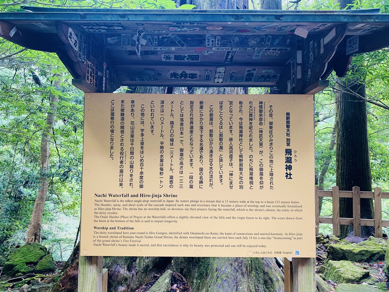 世界遺産であり、御瀧そのものをこの地に大己貴神が現れた御神体としてお祀りし、飛瀧神社の御神体として崇拝されています。