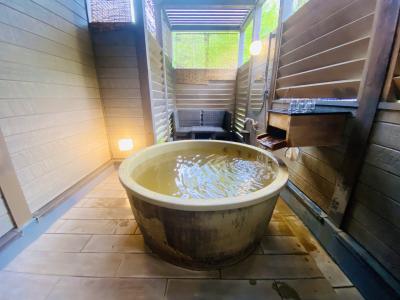 思いの外熱いのなるべく加水しないように、源泉を冷ましてから再度熱い源泉を足すと源泉100%の露天風呂が出来上がります(笑)