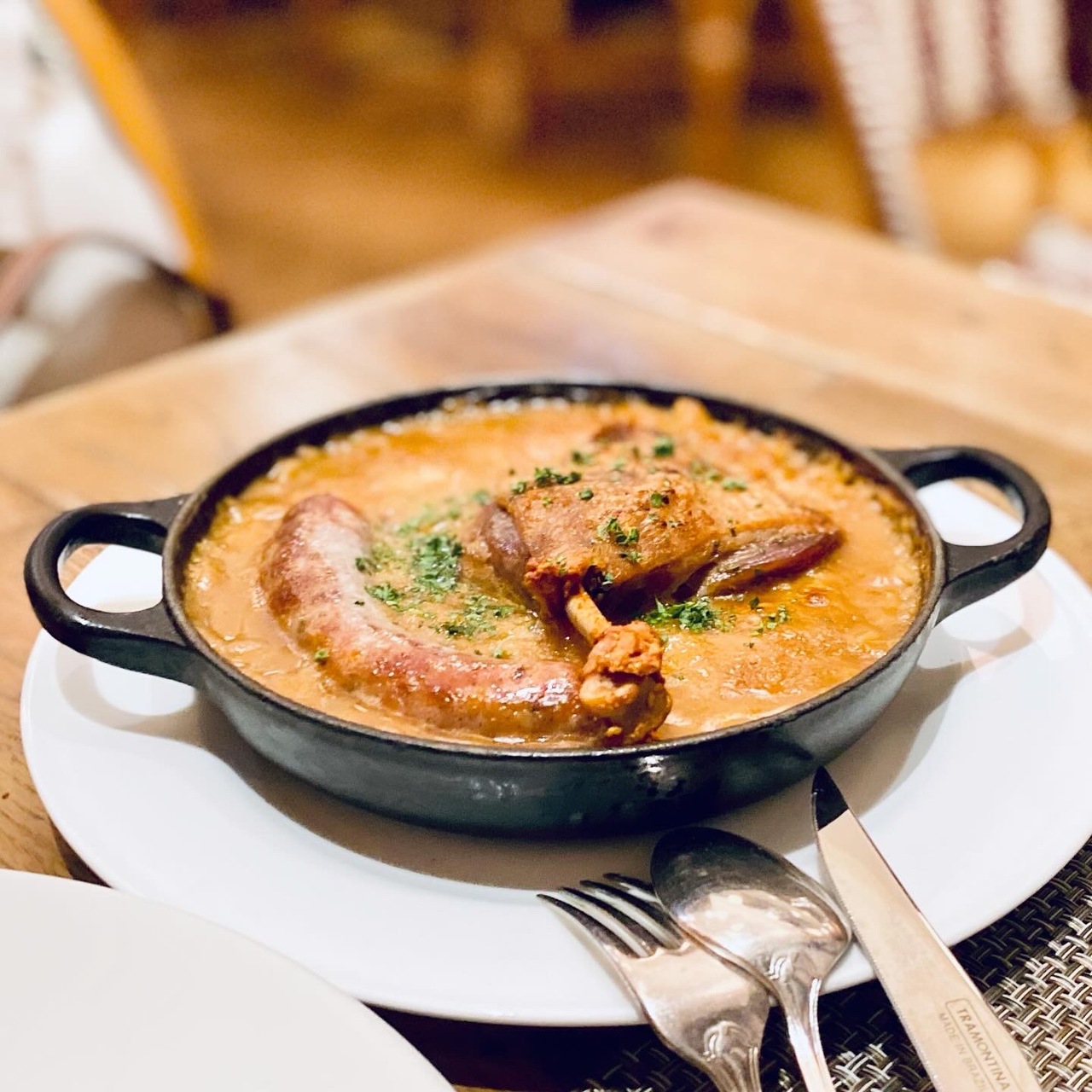 「鴨もも肉と自家製ソーセージのカッスレー」