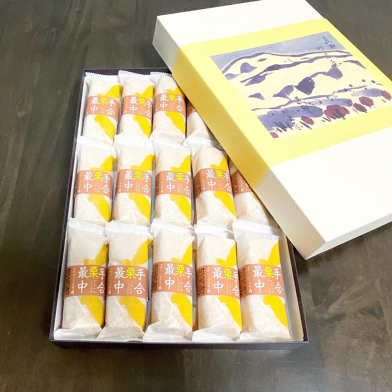 以前、親友の家に遊びに行った時に食べさせて貰った「手合栗最中」ですが、自分で栗餡を最中の生地に挟んで食べるタイプなので、出来立てパリパリ!