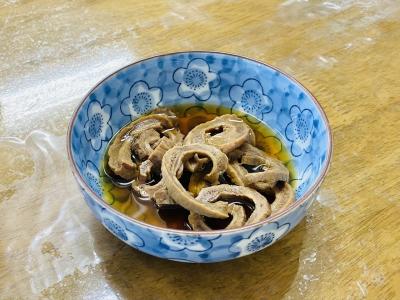 ご主人のご好意でマグロの喉の炒めと、胃袋の煮物を提供して貰いましたが、1本まんま購入するから食べられる部位です♪