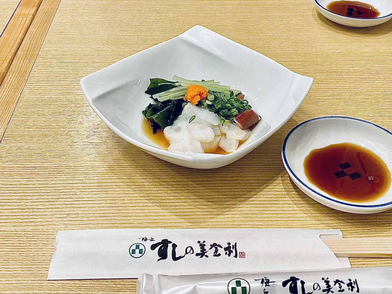 なかなかチョイスがシブイ娘がまず頼んだ物は、水蛸の酢の物と塩レモンの握り(笑)