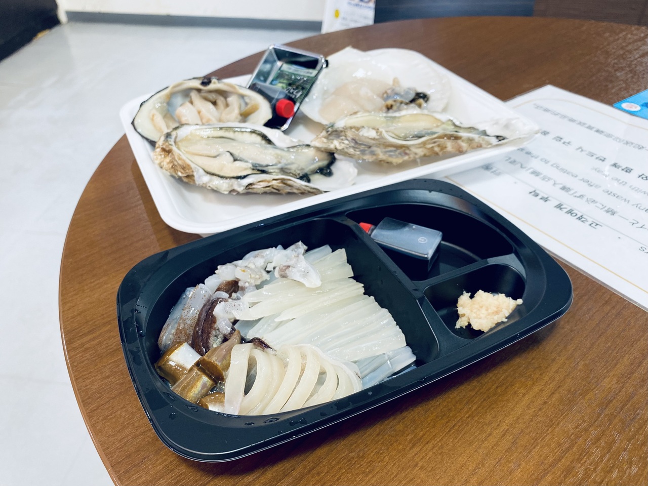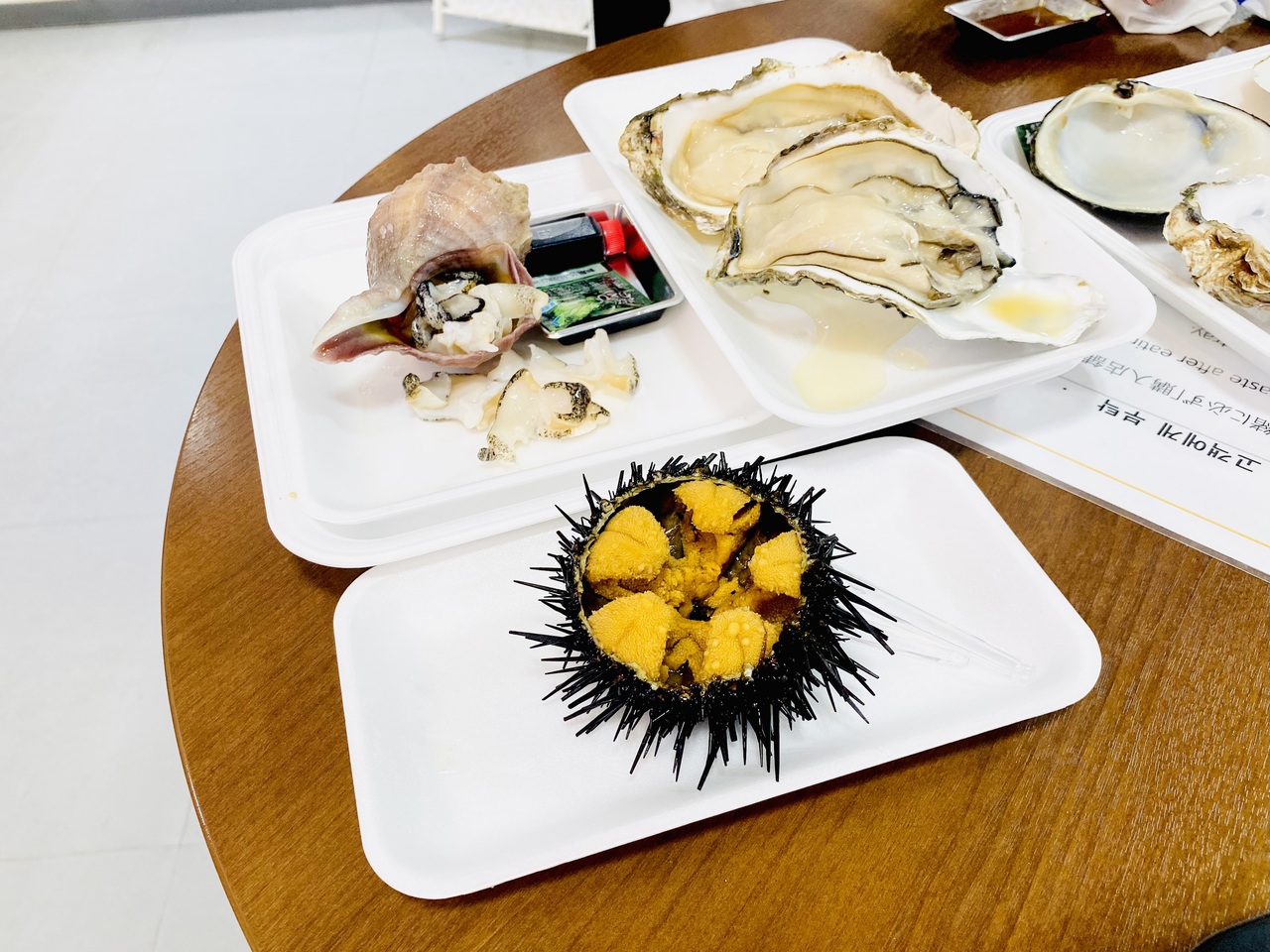 その他にも、厚岸産の真牡蠣とまるえもんがあり、後は帆立・北寄貝・真つぶのお造りや、殻付き雲丹をいただきました。