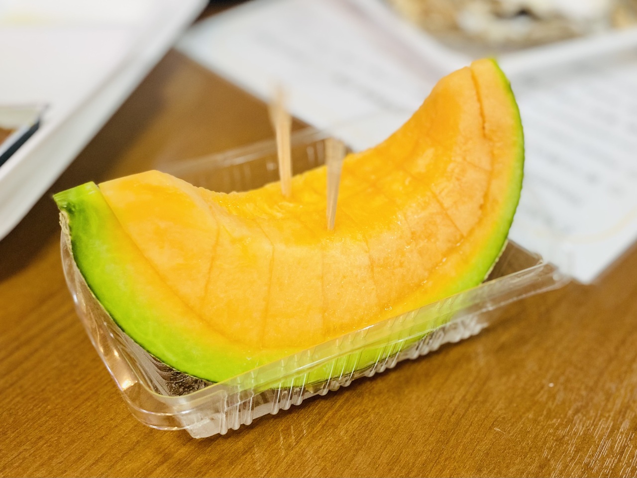 朝市ひろば内のフードコートで食べる事ができ、青果店では赤肉メロンなども購入出来るので大人気でした。