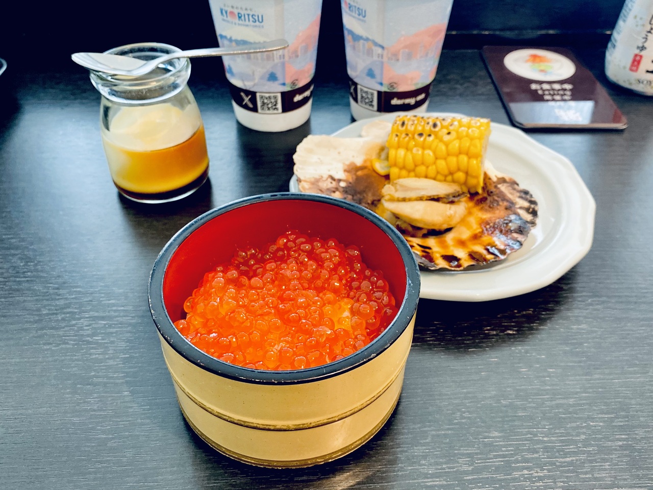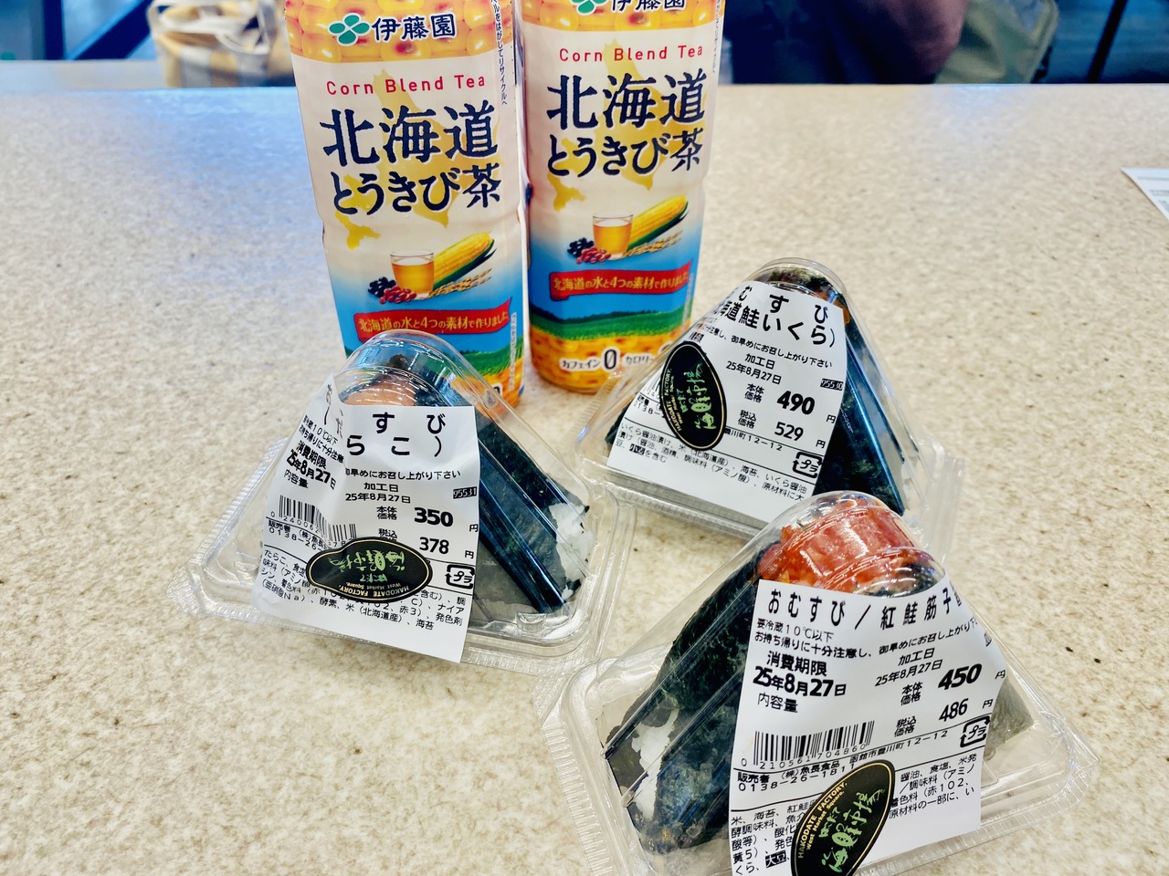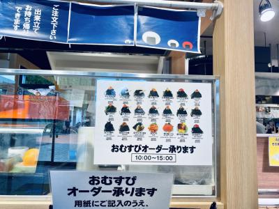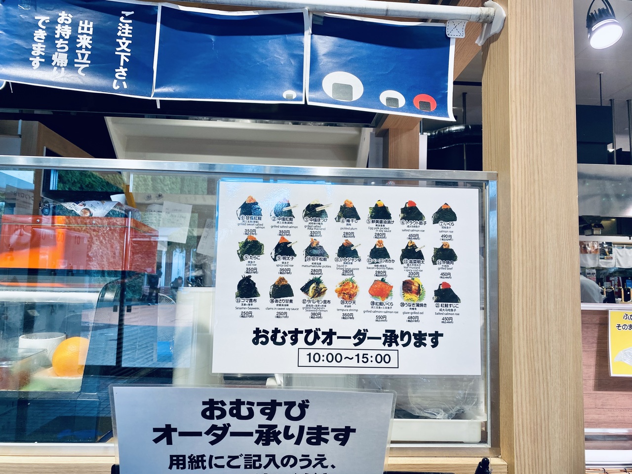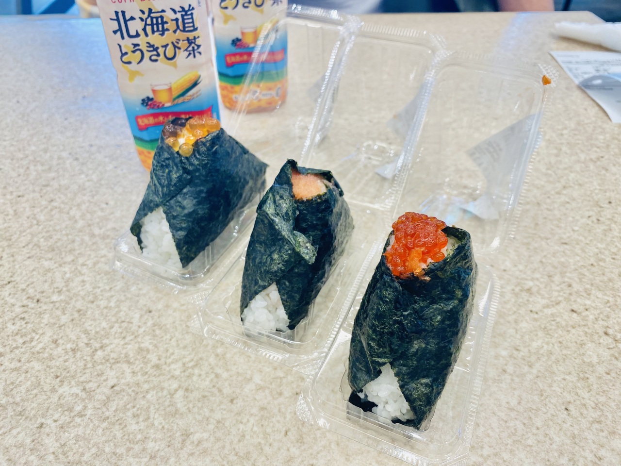 海鮮丼や蟹弁当など色々ありますが、おにぎりを握ってくれるコーナーがあったので、私は筋子とたらこのおにぎりで、夫はいくらのおにぎりを握って貰いました。