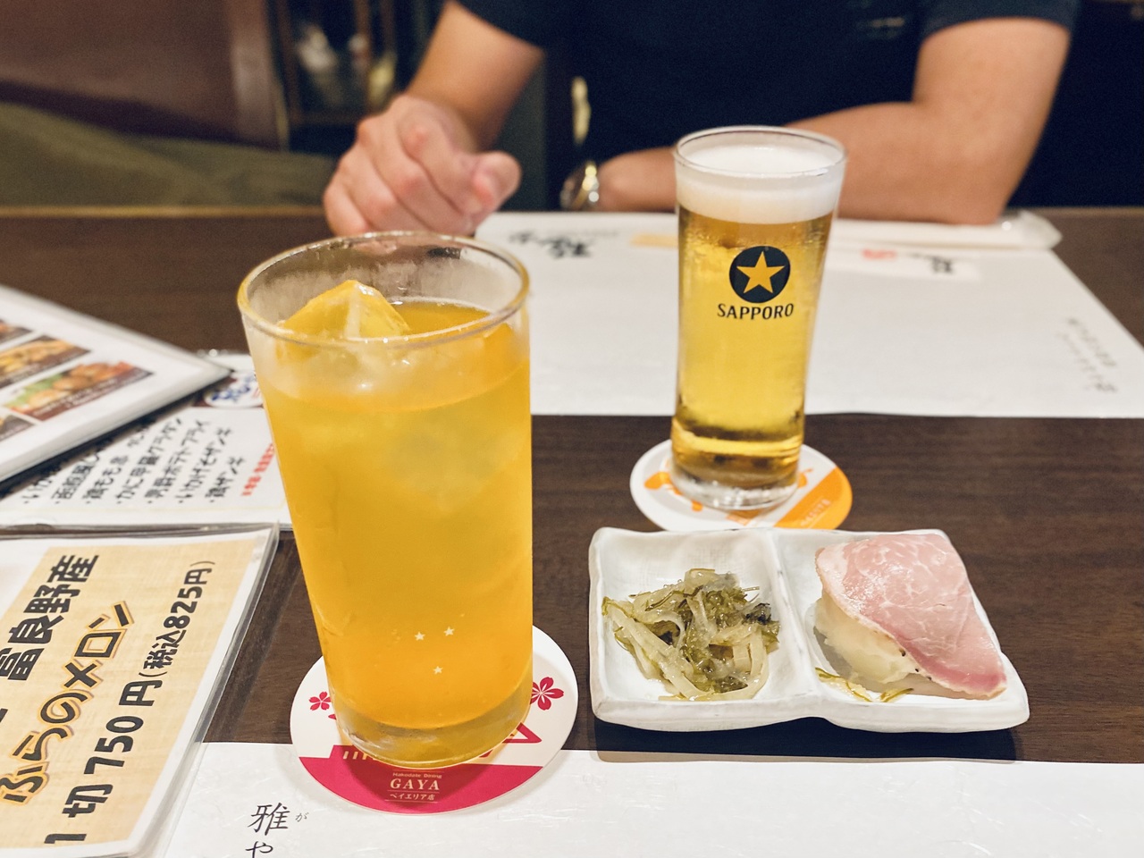 本当は色々なお店に行きたくて調べてあったのですが、何だか疲れちゃって食欲も無かったので、夫の晩酌に付き合いました(笑)