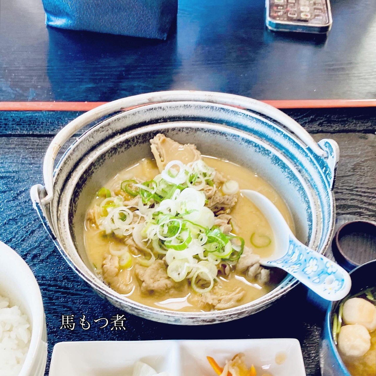 かなり悩みに悩んで、一品料理に鳥もつ煮があったにも関わらず、山梨は馬もよく食べるよなーと思い「馬もつ煮定食」にしました(笑)