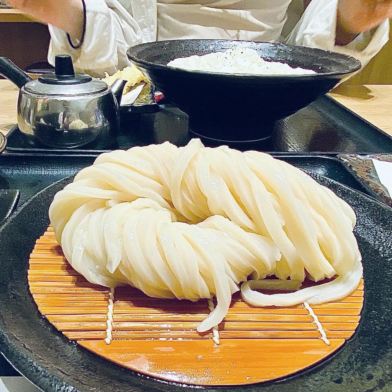 とにかくうどんのコシが強く長いので、1本か2本をつゆに付けて食べるのがちょうど良いですね。それ以上になると重たくて箸で掴めないのと口の中に収まりません(笑)