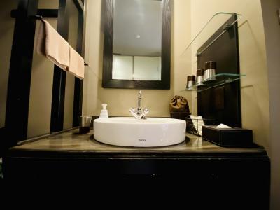 洗い場にはリファのシャワーヘッドが使用されており、パウダールームにはDysonのドライヤーがありました。