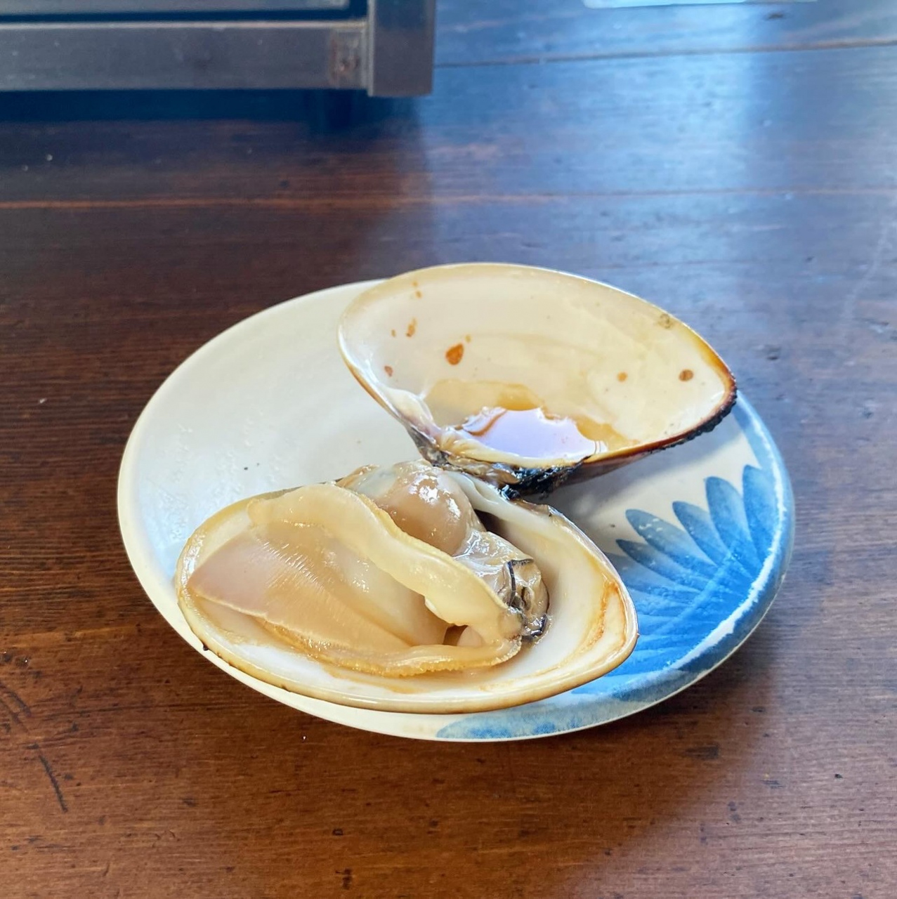 コンロにはまぐりを置いて、割と早くに口が開くので貝専用の醤油を垂らし、焼きすぎないくらいで食べるのが1番美味しいそうです。
