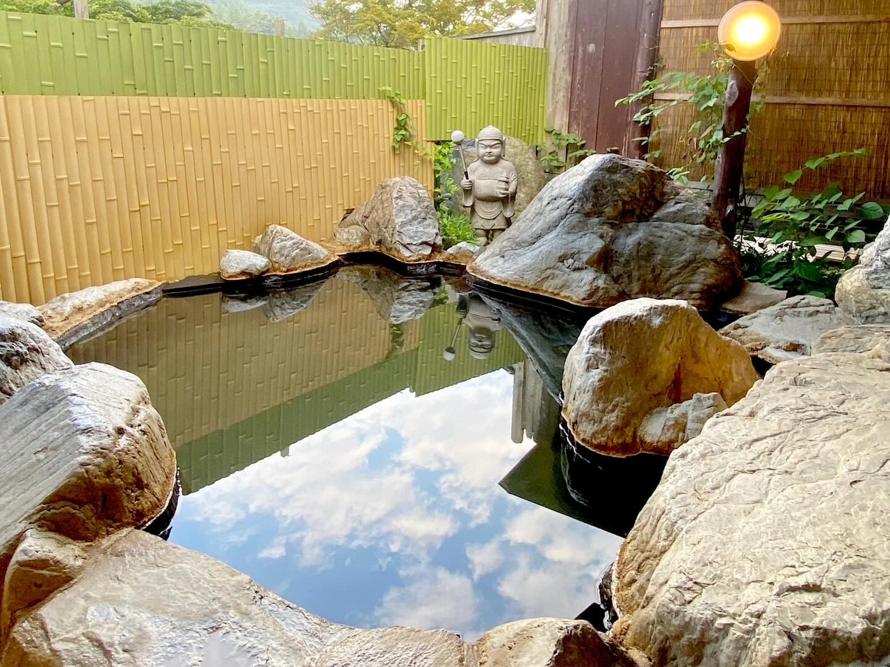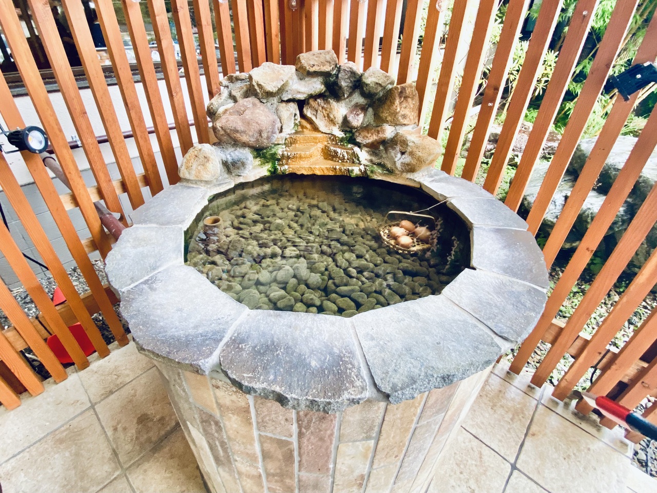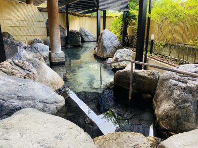 露天風呂も広々としていて、かなりぬる湯になっているので、ぬる湯の露天風呂好きな夫は最高~ ❤︎と言って感激しながら長々と入っていました(笑)
