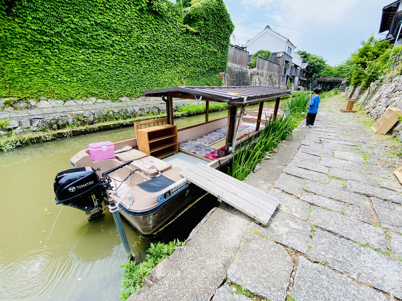 「八幡堀めぐり」に使用される舟は、昔ながらの手漕ぎ舟とエンジン搭載の舟に分かれ(多分、会社が違う)ています。