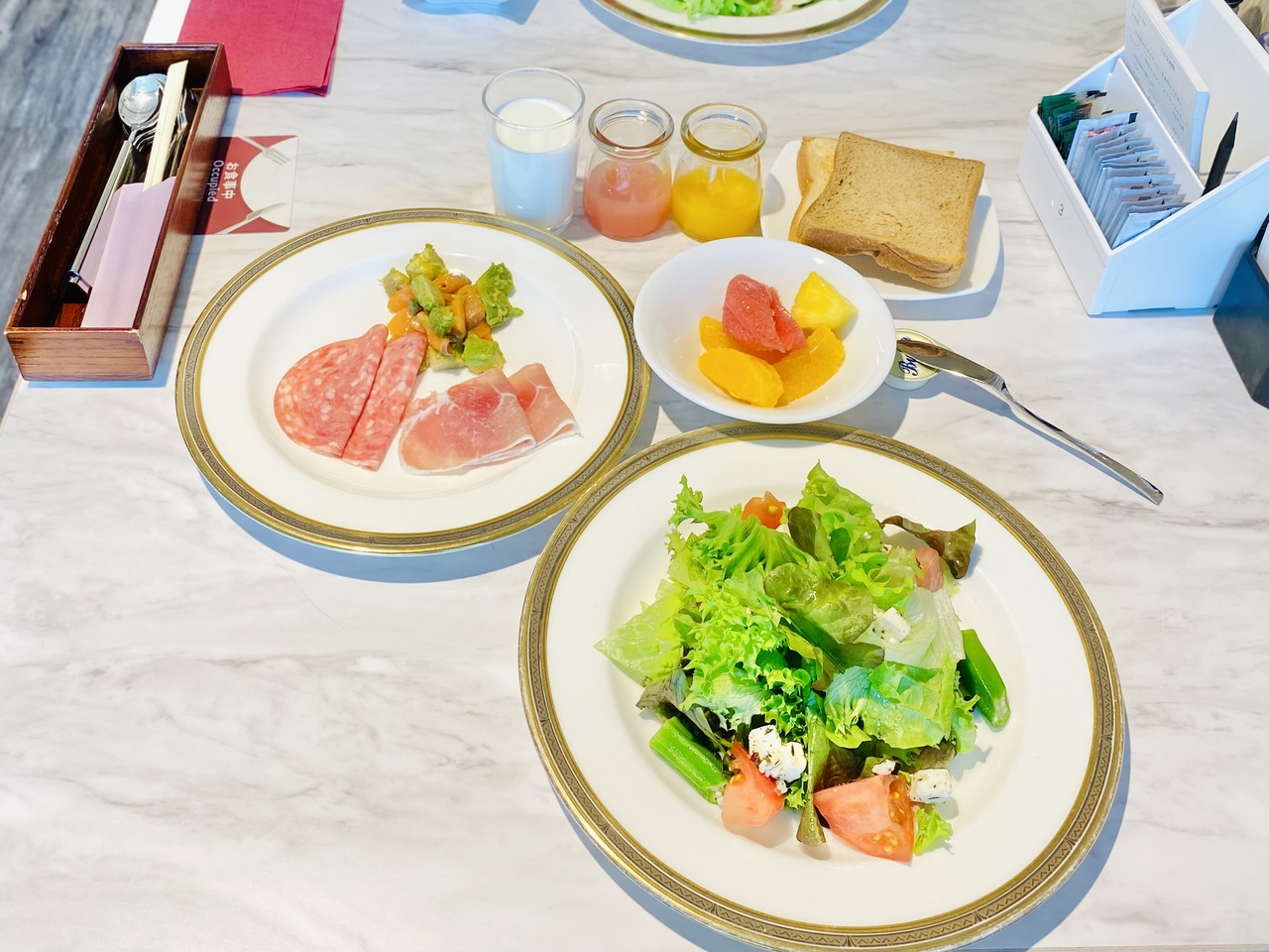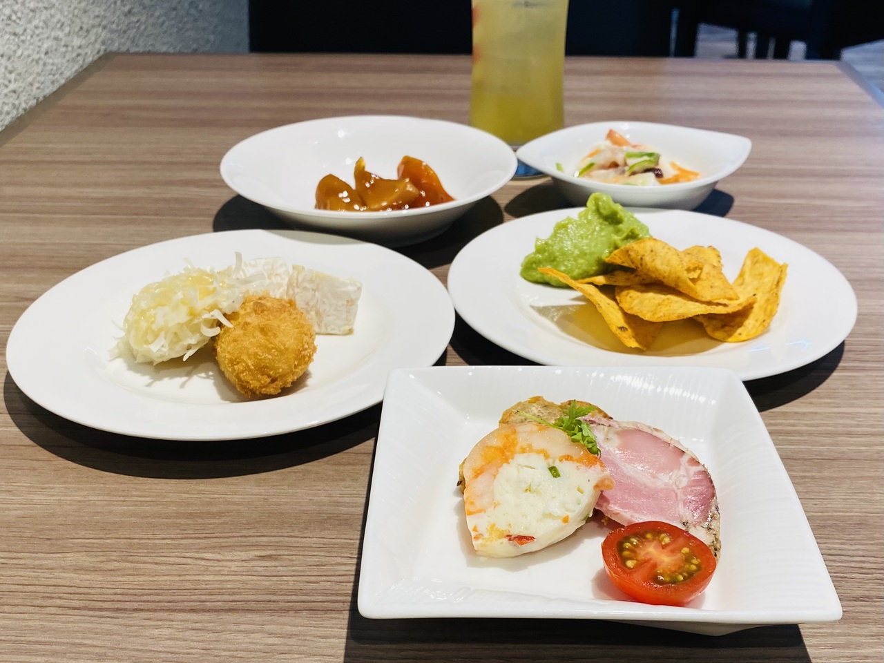 前回宿泊した時は、まだプラチナではなかったので、結婚式場の待合室のような所でお菓子を貰うと言う感じでしたが、今回は軽食が食べられます(笑)