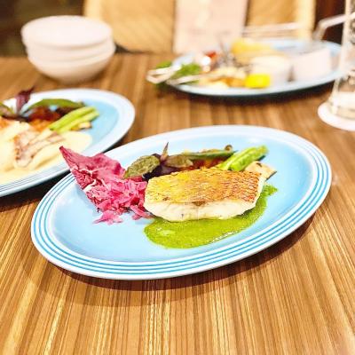 【赤仁ミーバイのグリル 温野菜添え 白ワインソース】