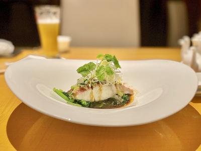 シェフお勧め【沖縄近海魚”赤マチ”ハマダイ さっと蒸し葱生姜の香り豊かなニンニクソース】