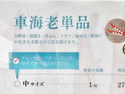 提供される車海老の大きさは6段階あって1尾のお値段が
