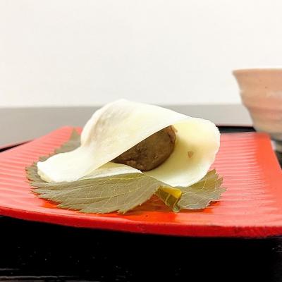 もともと桜もちは塩漬けされた桜の葉を一緒に食べるのが好きですが「山本や」の桜もちは甘さが控えめなので、塩漬けの葉を外した方が味のバランスが良くなります。