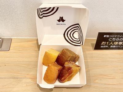 暖かいバウムクーヘンで、4種の味が楽しめます。