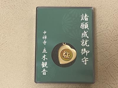お寺の方が「立木観音」様の説明をしてくれましたお堂の中でしか購入できない、千手観音様の梵字が書かれており、何と!色の変わるストラップ!