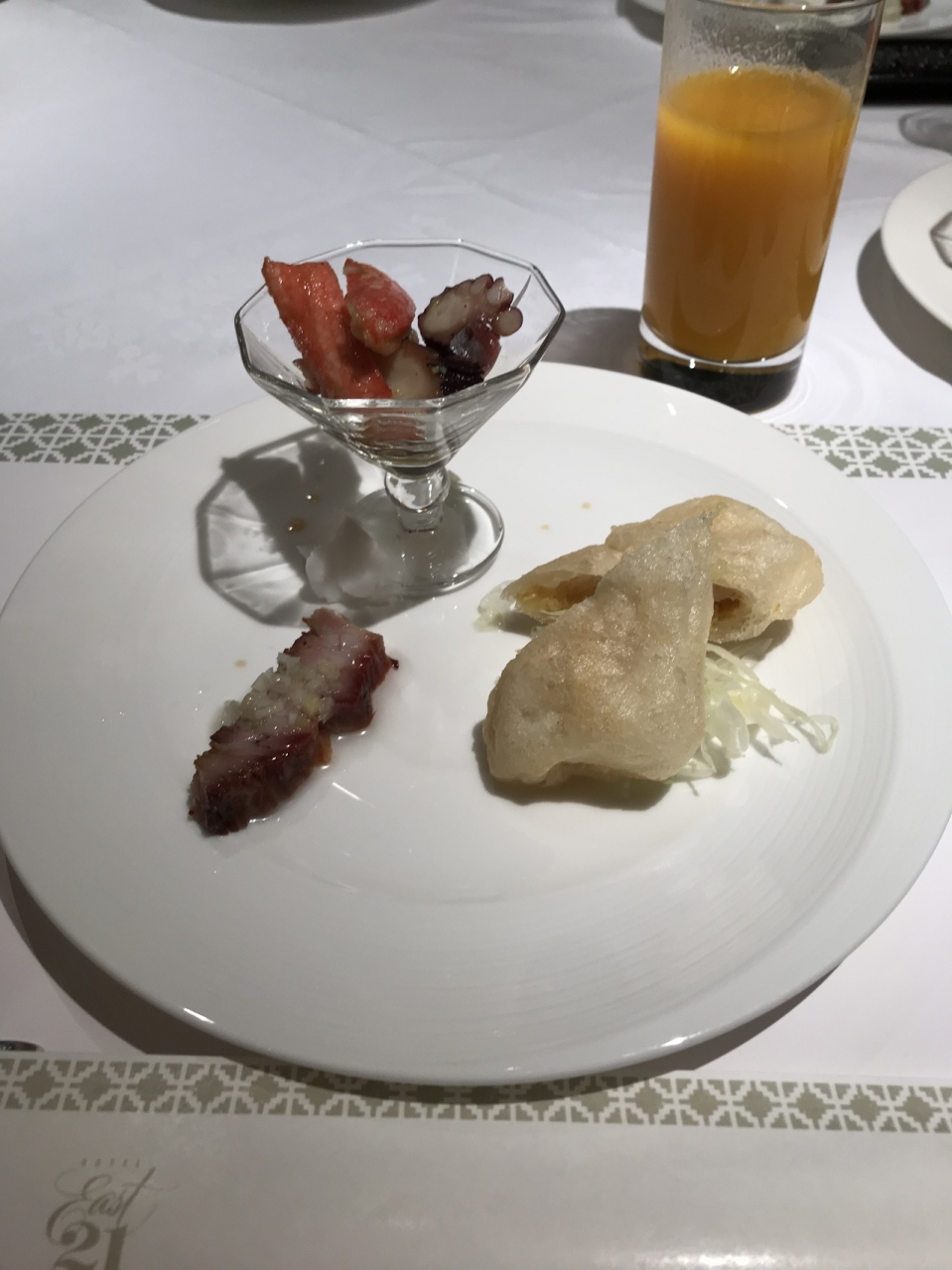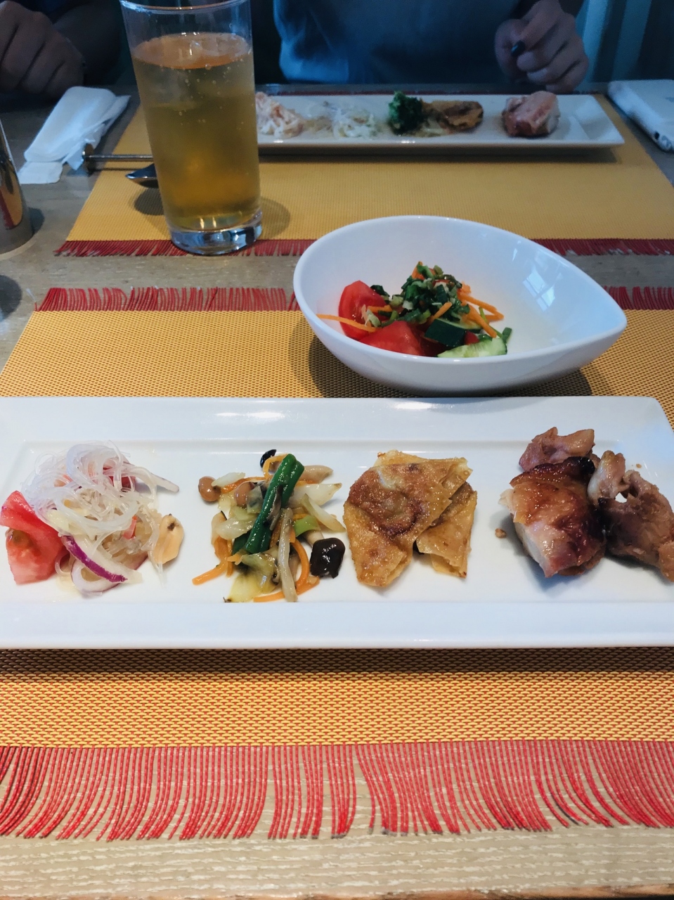 前菜の春雨サラダ。昔、タイの友人に作ってもらったものに似ていて、むせるほど辛いのが◎(笑)