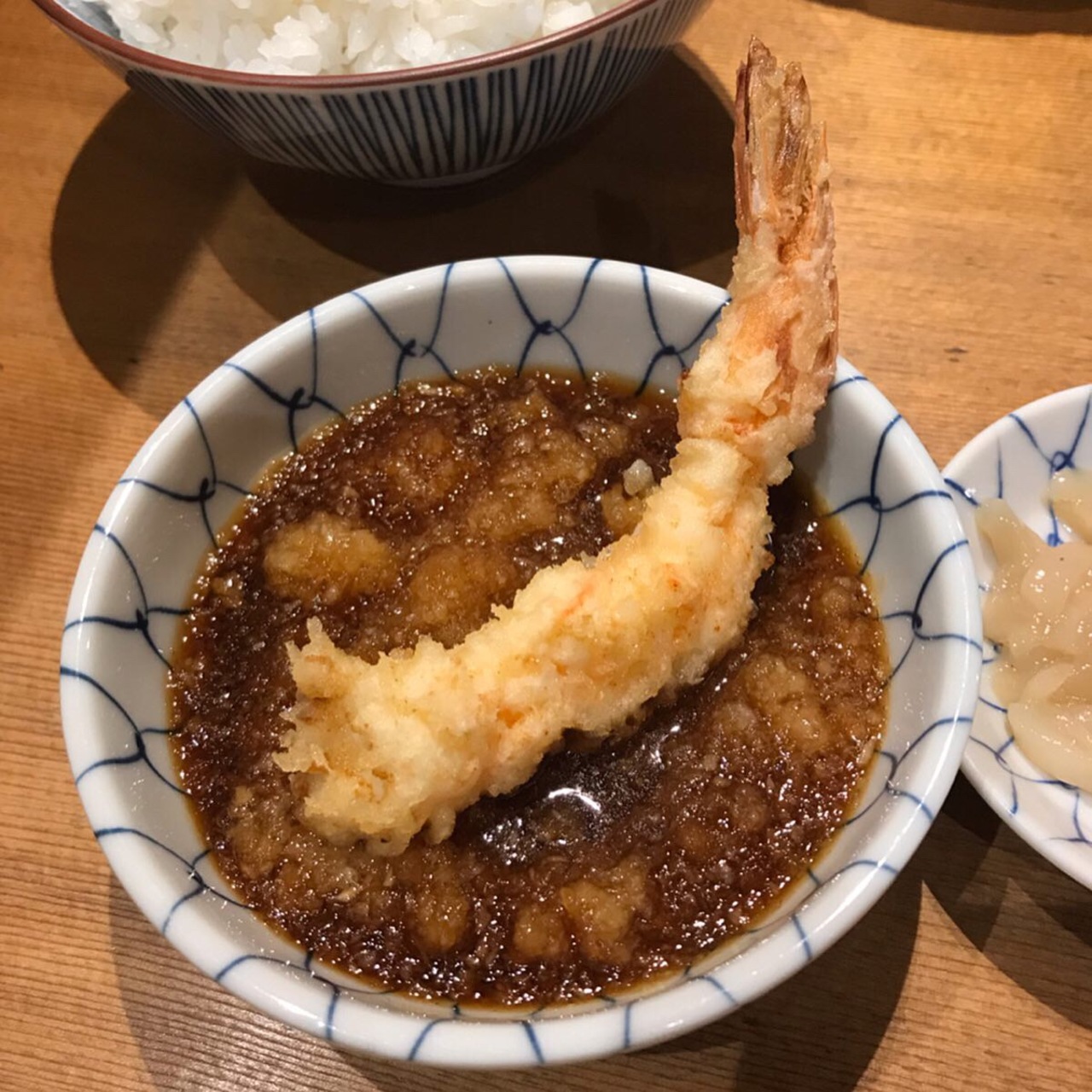 私はいつも海老の天ぷらめしをオーダーするのですが、その中に付いてくる卵の天ぷらをご飯に乗せてお醤油をかけるのが特にお気に入りです♪