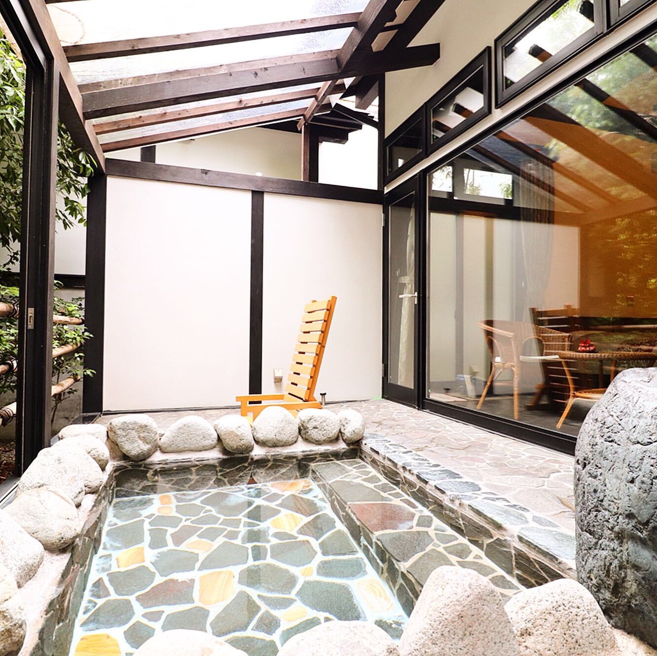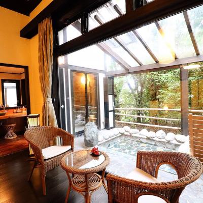「離れの宿 月のあかり」露天風呂客室には、足湯も付いているという気のきいた宿♪