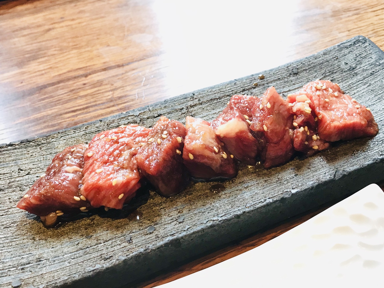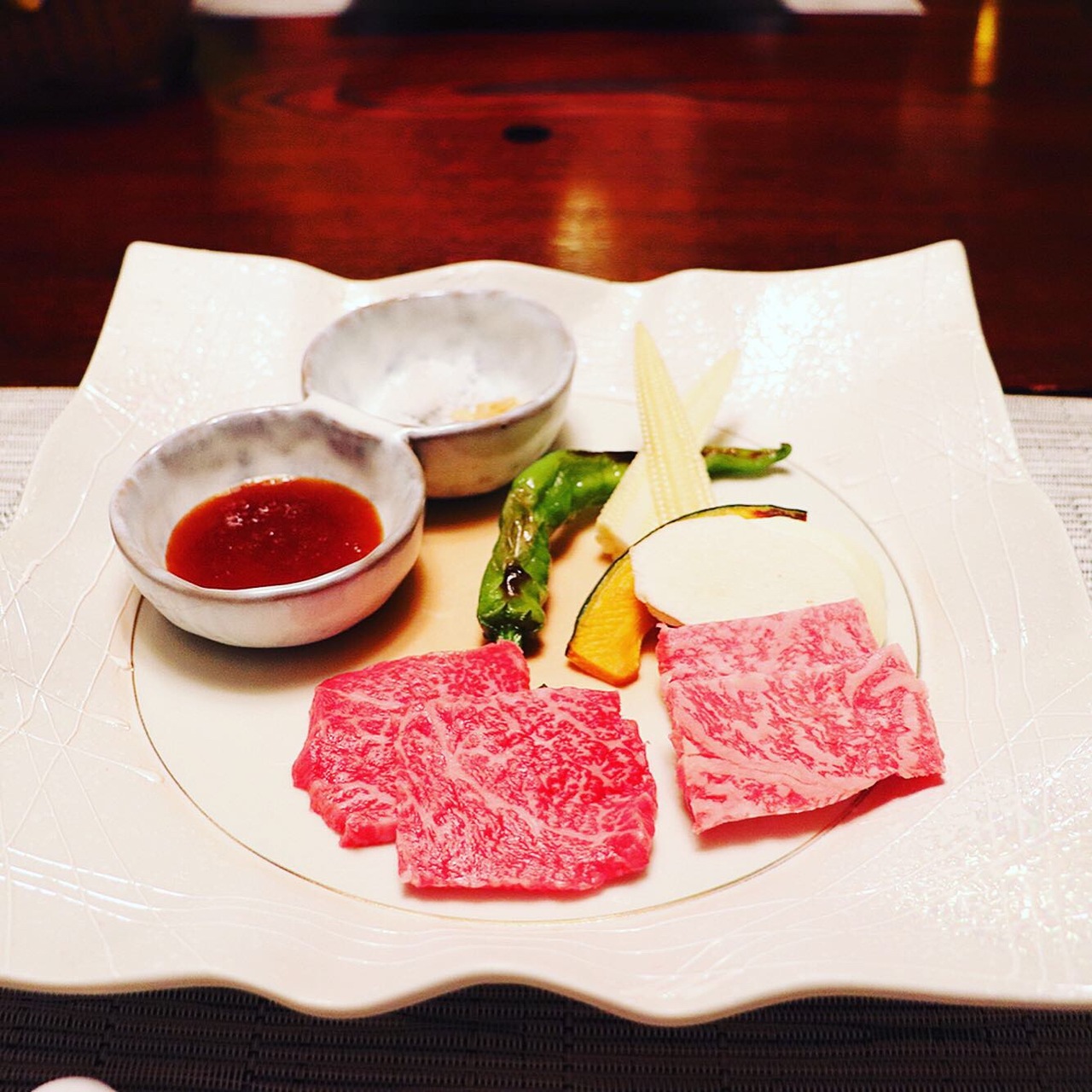 私は大抵ロースか、サーロインの200から300gをミディアムレアで頼み、卓上にあるすりおろしニンニクと醤油ていただきます(´∀`*)
