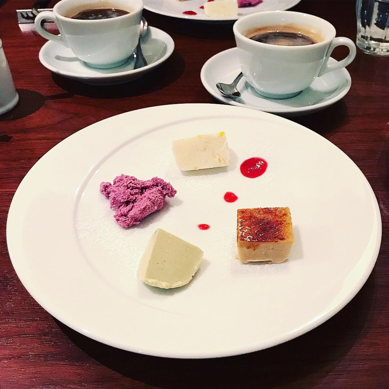 デザートも、マロンのアイスとピスタチオのムース、カシスのムース、アプリコットのアイスが少しずつ♪
