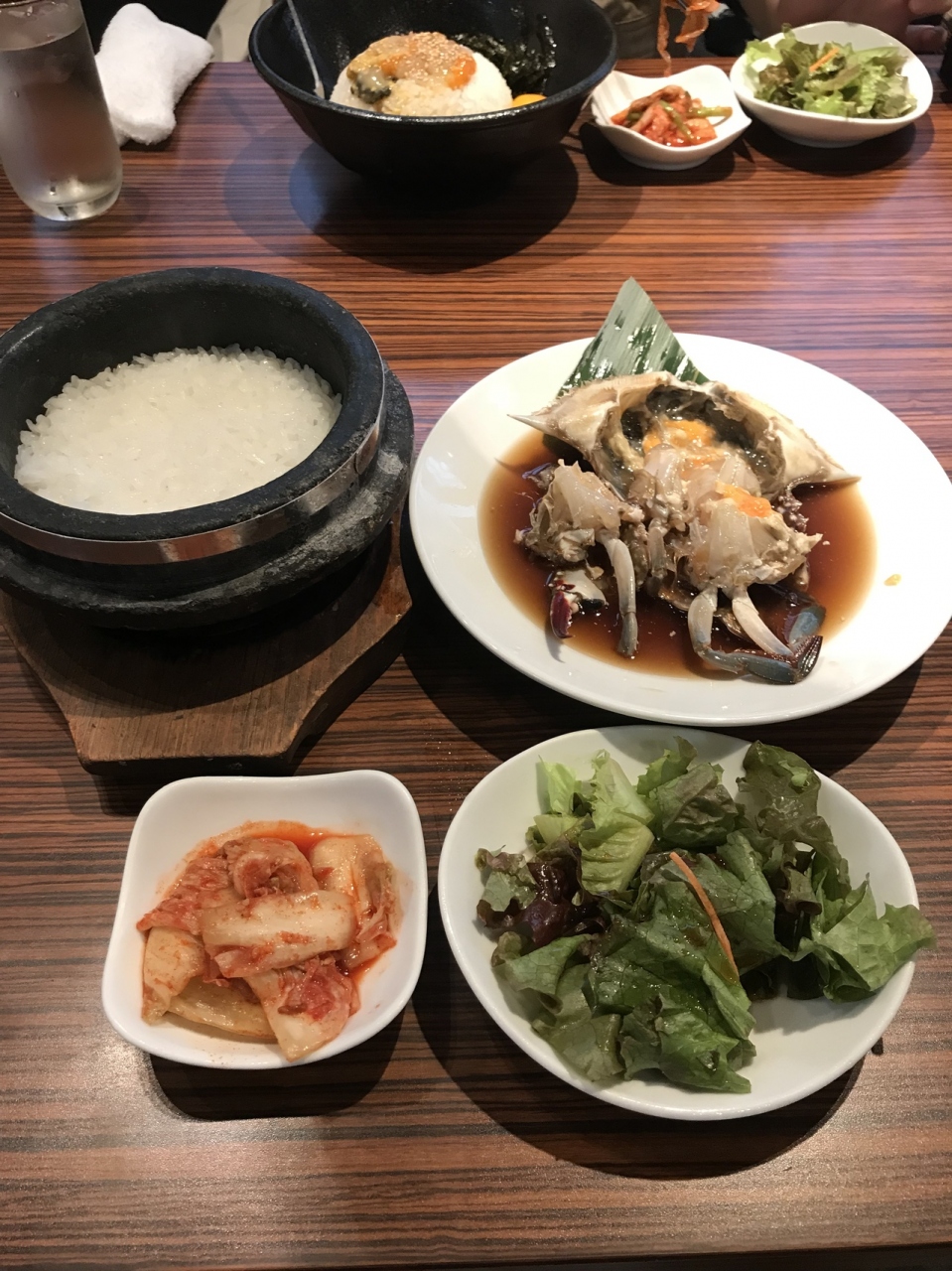 私のオーダーはカンジャンケジャン定食で、娘のオーダーはカニみそビビンバ定食!!