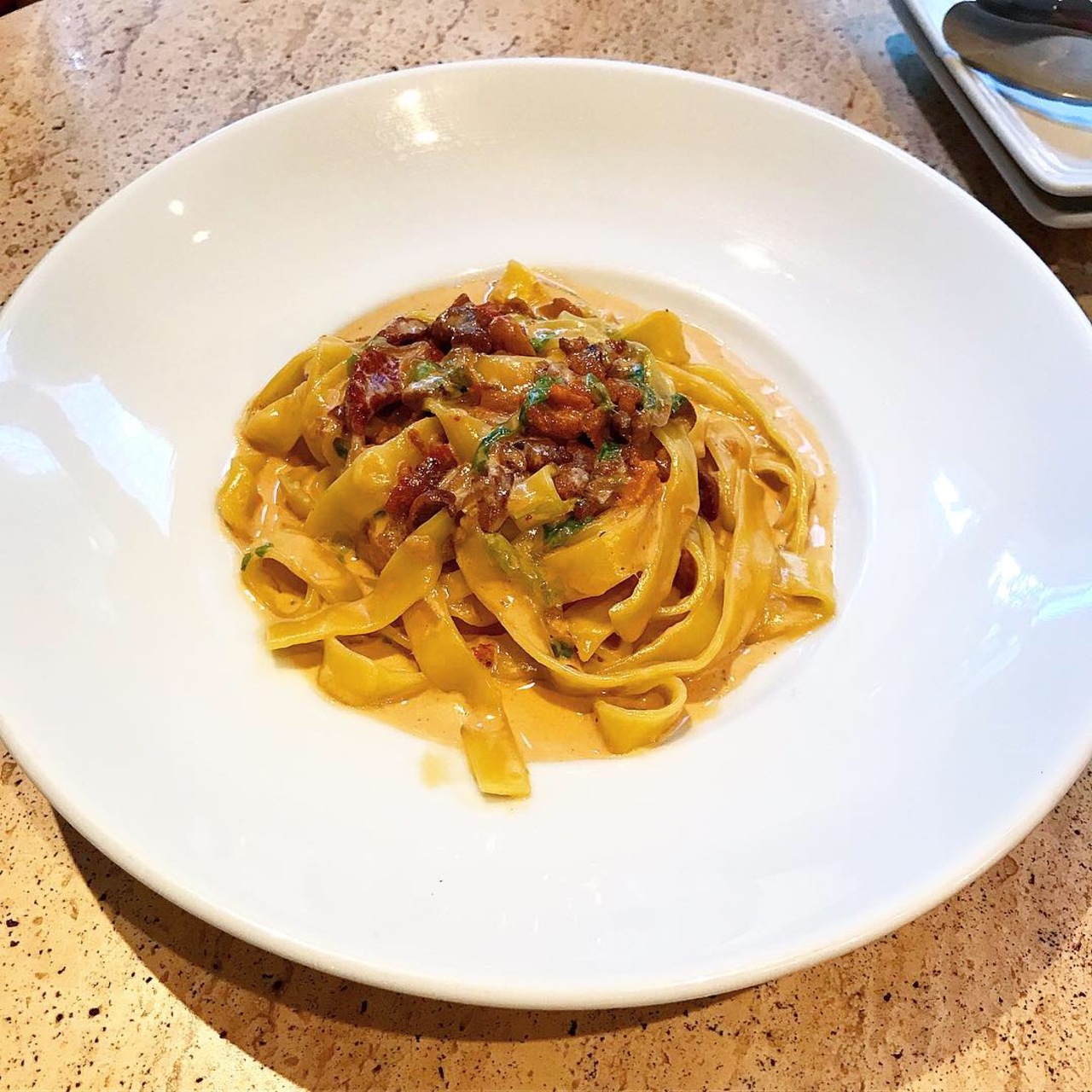 今回は娘が見つけてきて、パンケーキ美味しそうと言うので行ってきましたが、なんと娘は生ウニクリームのフィットチーネをオーダーƪ(˘⌣˘)ʃ