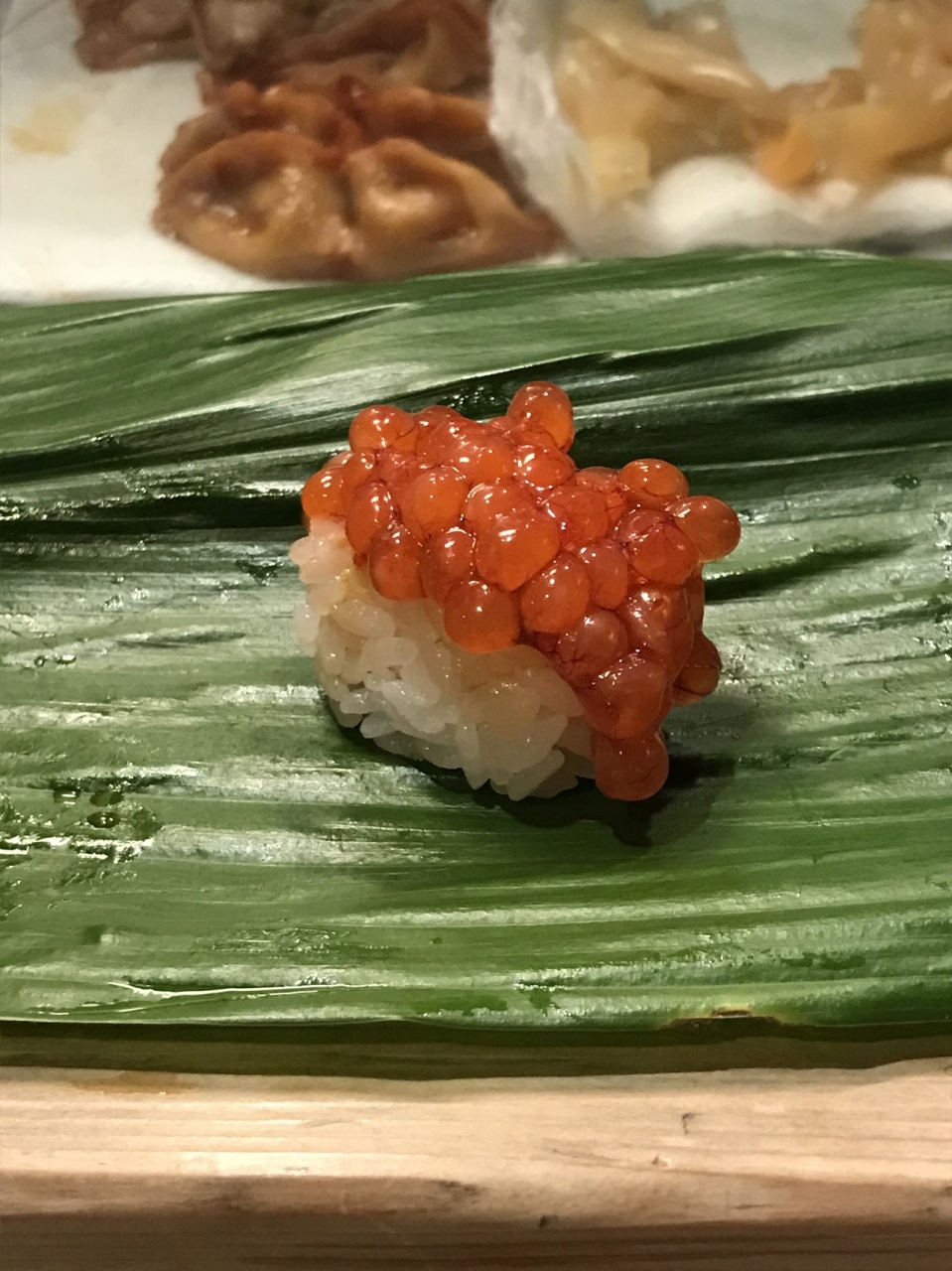 今回珍しいなと思ったのは、生筋子をそのまま握りにする事!醤油漬けはよく見ますが、このままお醤油を垂らしていただきます!