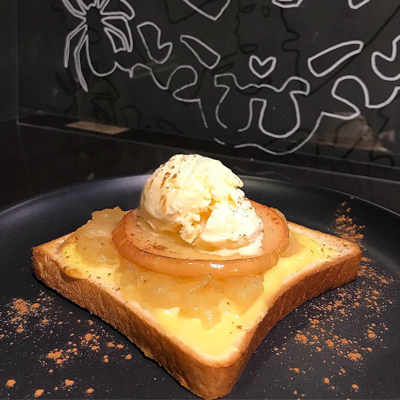 クワトロは娘と半分にして、その他「スモークチキン&レモンのパスタ」と「アップルシナモントースト」にバニラトッピング♪